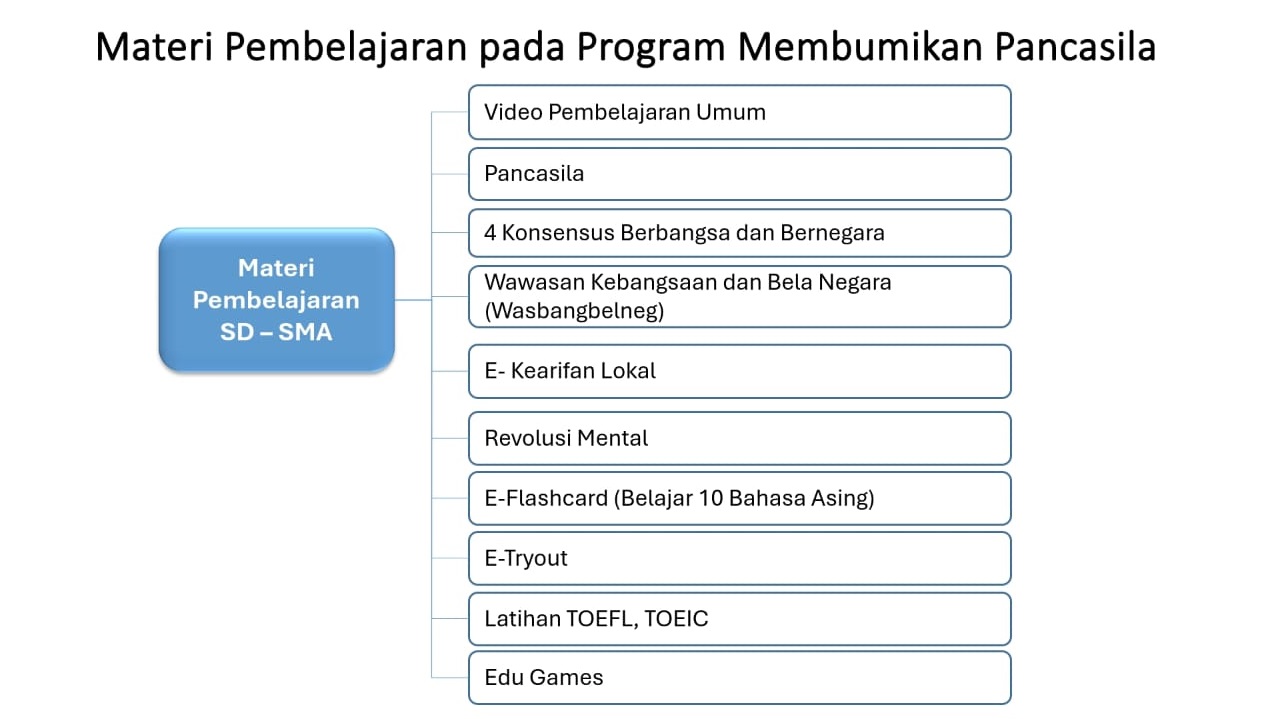 Pembelajaran E-Learning pendidikan digital Membumikan Pancasila mendukung mempersiapkan “Generasi Indonesia Emas 2045” yang berkarakter Pancasilais.